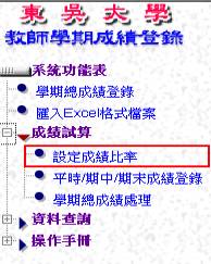 Ø設定成績比率:本項作業提供六個平時成績、期中暨期末之比率設定。
