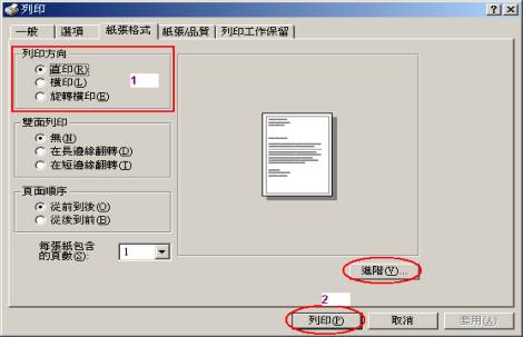 註:確認A4紙張請點按【進階】鈕。 2、請點按 【列印】鈕 |