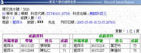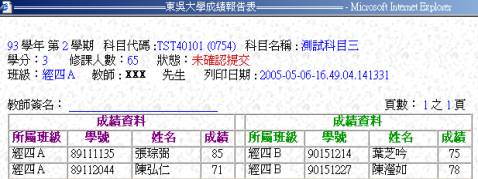 ※已確認提交之成績報告表表頭樣式。 |
